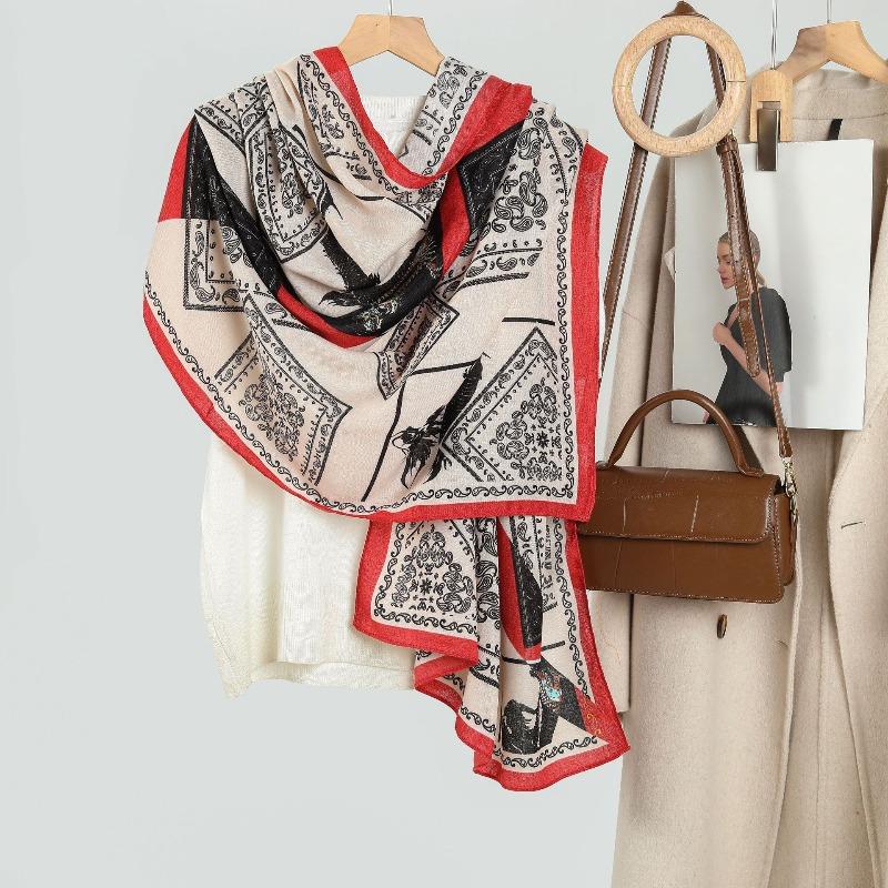 Hot-selling retro cashew nut women's printed imitation velvet silk scarf, spring, autumn and winter fashion versatile warm thin shawl