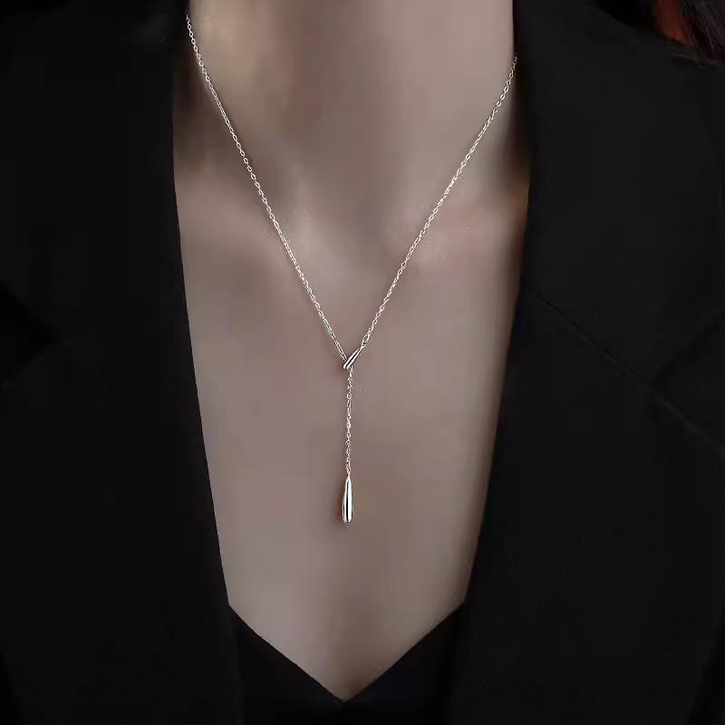 925 Silberplattierte Tropfenkette für Damen, Elegantes Quasten-Choker mit Nischendesign - Modern, High-End-Stil
