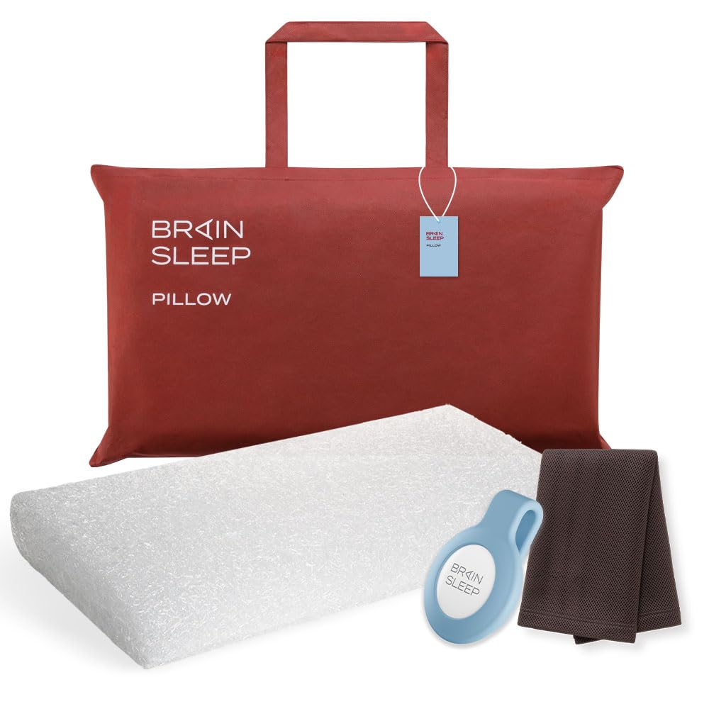[BRAIN SLEEP] Brain Sleep Kissen NIEDRIG (7 Farbverlauf) + Kissenbezug Active Air Braun + Brain Sleep Münze Blau