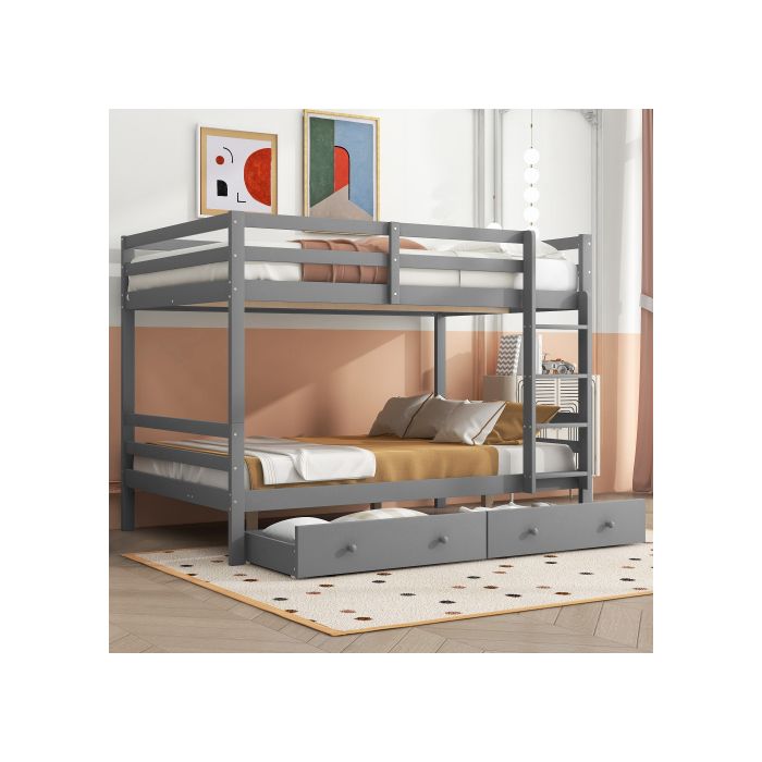 Lits superposés - MUVOE - 140x200cm - Gris - Avec tiroirs - Construction robuste