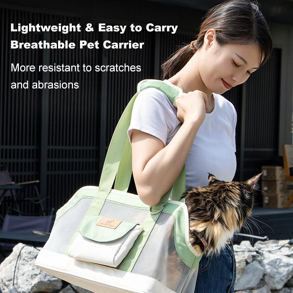 Vollständig atmungsaktives Design: Diese tragbare Haustiertasche verfügt über ein vollständig atmungsaktives Design, das Ihrem Haustier ermöglicht, in der Tasche frei zu atmen, Bedenken hinsichtlich Stickigkeit während der Reise ausräumt und ein komfortables Reiseerlebnis für Haustiere bietet.
