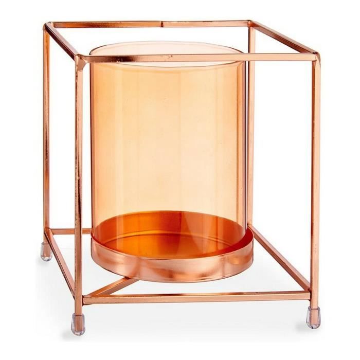 Bougeoir - Cuivre Ambre - Métal - Verre - 14 x 15,5 x 14 cm