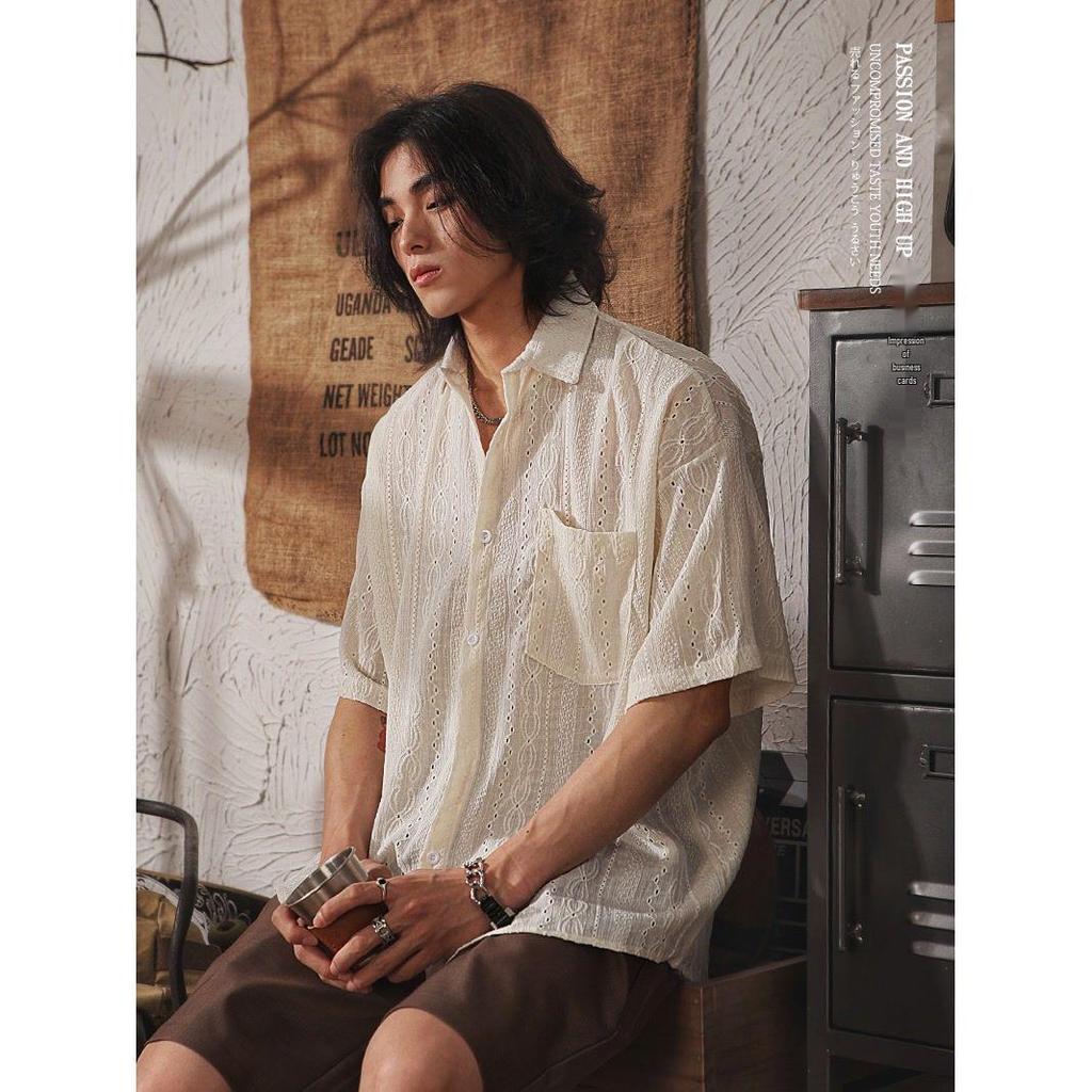 Men's Japanese Retro Ethnic Style Hollowed-Out Short-Sleeve Shirt