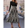 2024 A-Linien Taillenbetonendes Patchwork Langarm Elegantes Kleid für Frühling und Herbst