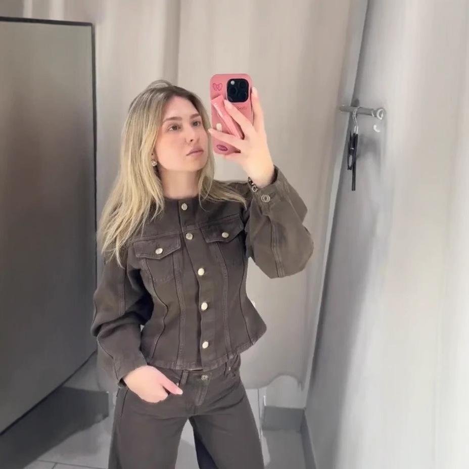 Werten Sie Ihre Garderobe mit diesem schicken Damen-Denim-Set auf, bestehend aus einer retro-schmal geschnittenen einreihigen Jacke und trendigen Schlaghosen.. Dieses Set aus hochwertigem Polyester vereint den klassischen Reiz von Vintage-Mode mit modernem Stil.. Perfekt, um ein Statement zu setzen, machen die schmeichelhafte Silhouette und die bequeme Passform das Outfit zu einer idealen Wahl für jede modebewusste Frau, die ein einzigartiges und stilvolles Ensemble sucht.