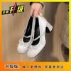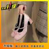 Rundkopf Strass Einzelne Schuhe 2025 neu pink Temperament Französische Schleife leichte Öffnung Satin dicker hoher Absatz Ein-Wort-Riemchenschuhe