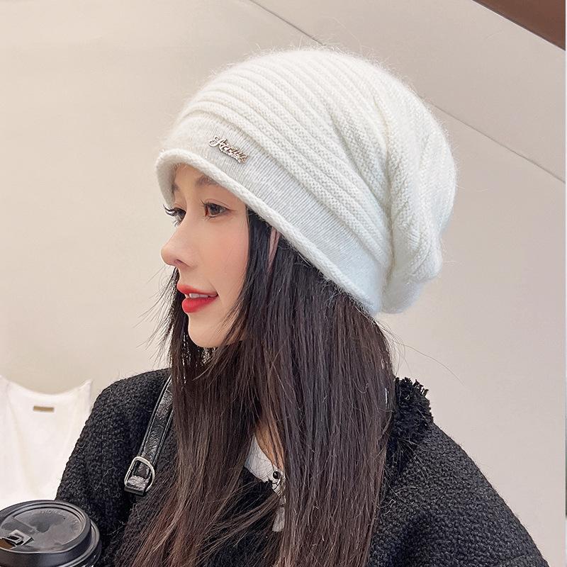 Autumn and Winter Hats for Women Korean Version Versatile Warm Baotou Knitted Hat Fashionable Loose and Face Showing Small Woolen Pile Cold Hat