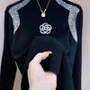 Women's Half Turtleneck Sweater with Rhinestones Solid Color Stretch Knit Pullover sweater Autumn Winter