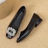G3760-12 Strass quadratische Schnalle Pendlerschuhe schwarz Einzelne Schuhe Damen neu Frühling und Herbst mit Rock eckige Zehenpartie Abendschuhe Damen