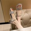 Strass-Sandalen Damen dicker Absatz 2025 neu Sommer Damen beige Feenstil mit Rock mittlerer Absatz hohe Absätze Sommer