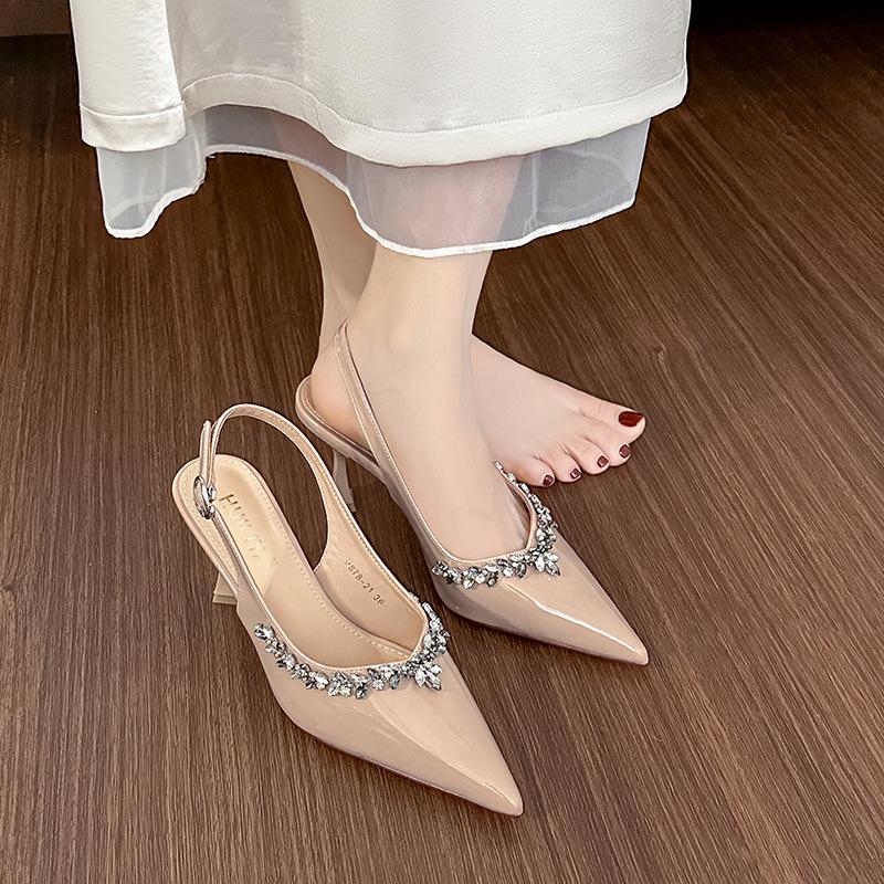 B878-21 Strass spitze Fee Temperament Baotou Sandalen 2025 neu Sommer Französisches Lackleder Stiletto Damenschuhe