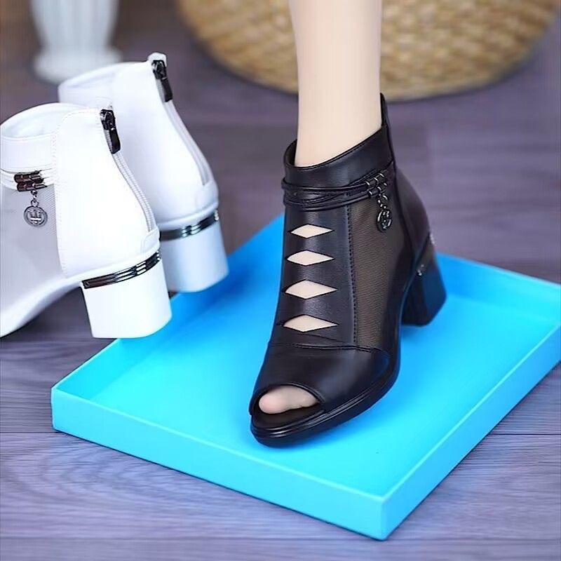 Sandalen 2025 Neue Mesh-Sandalen mit mittlerem Absatz Damen High Heels Damen Grobe Absätze Damenschuhe Coole Stiefel Schuhe Mutterschuhe