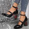 Designer Damen Punk High Heels Pumps Gothic Lederschuhe Rose Absatz Lederschuhe Lolita Schuhe Frau Knöchelriemen Mary Jane Schuhe