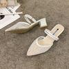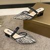 Sexy Damen Pantoletten und Damen Sandalen mit Absatz Pantoletten Spitzschuh Streifen Rutschfest Großhandel Lässig Bequeme Schuhe