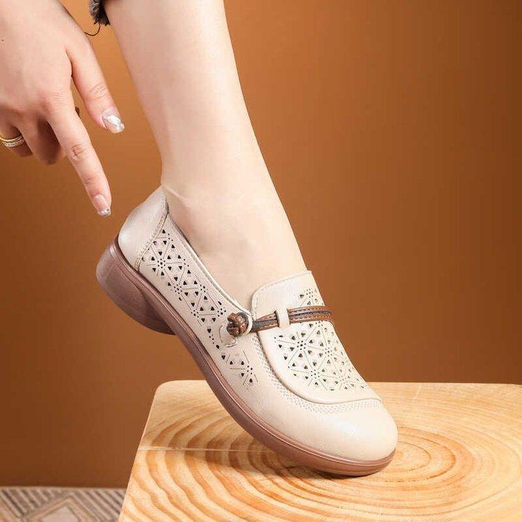 Hohle Lederschuhe 2025 neue Sommer-Mutter-Schuhe Sandalen bequeme weiche Sohle in den Schuhen für ältere Frauen flache Lochschuhe