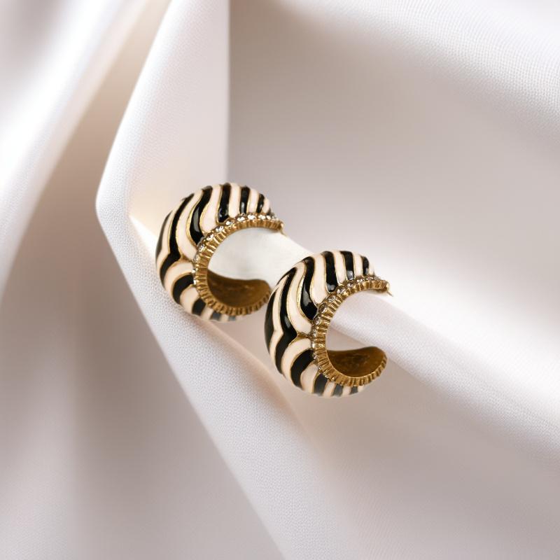 Gebrauchte Schwarz-Weiß C-förmige Zebra-Streifen Zirkon Ohrstecker - Vintage Europäisches Design