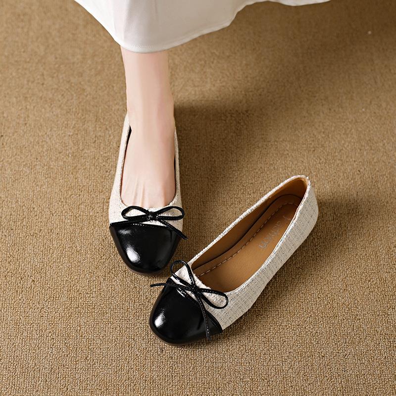 Xiaoxiangfeng Einzelne Schuhe mit quadratischer Spitze 2025 neu Schleife vielseitig flacher Mund flache Sohle Nische Fee weiche Sohle Doudou Schuhe