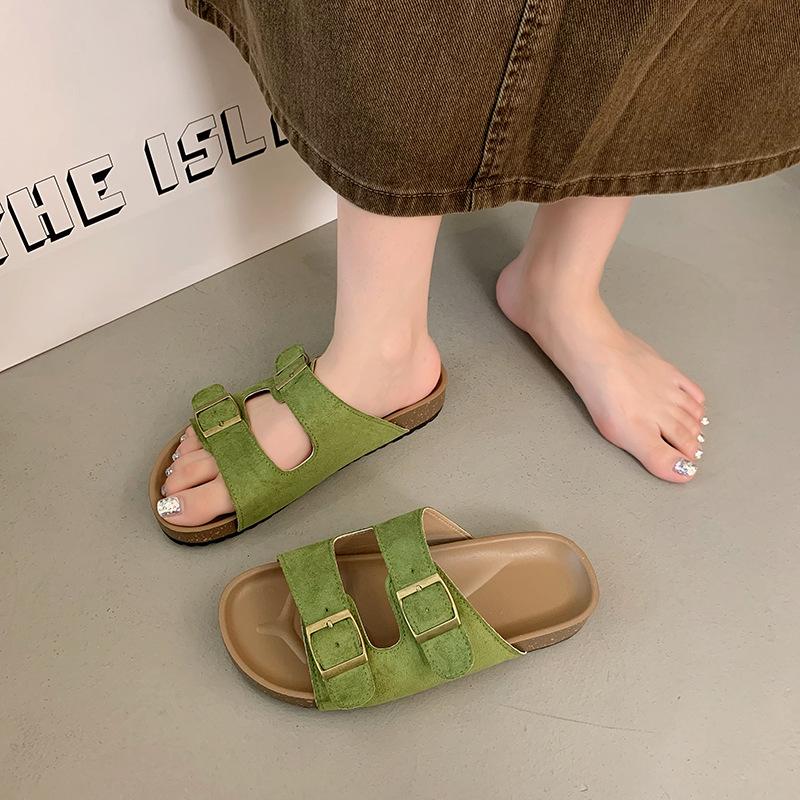 British style retro buckle slippers women's summer wear 2025 new Korean version of one-word drag beach shoes cool slippers