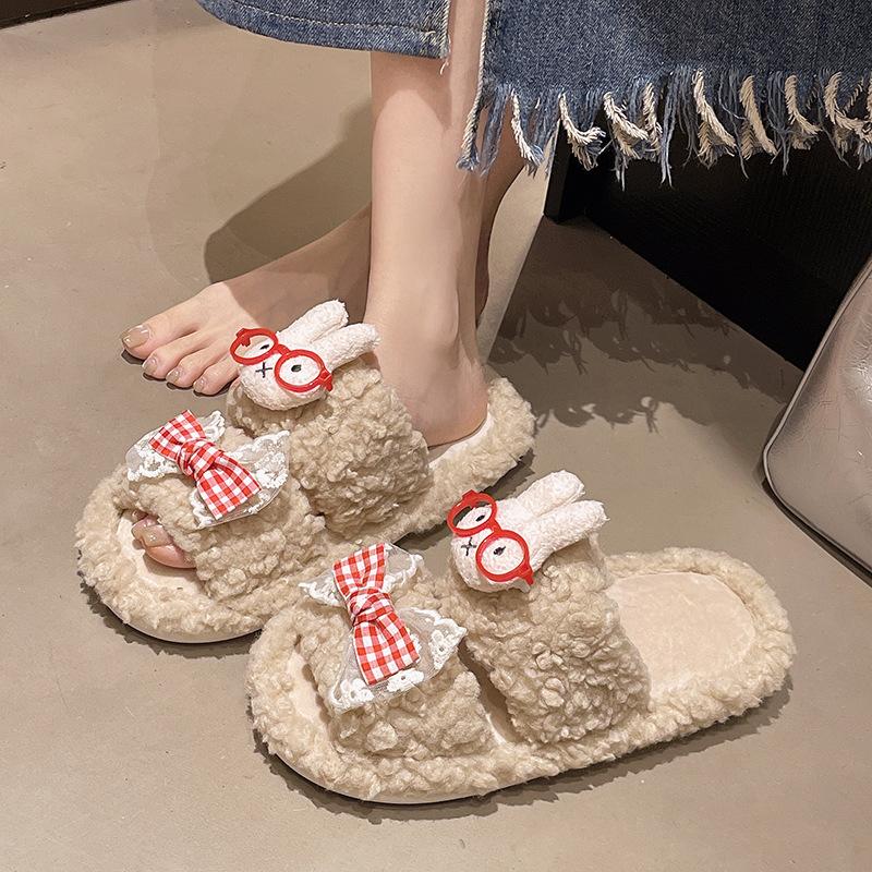 Niedliche Cartoon flauschige Hausschuhe Damen 2025 Herbst und Winter neu Außenbekleidung rutschfest flauschig warm Charakter Baumwollmopp
