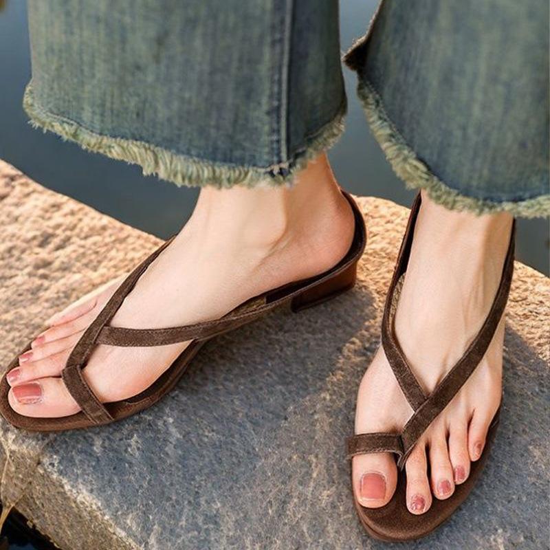 2025 Sommer neue Mode dünner Riemen Französische Nische Zehenkeilabsatz faule Sandalen Keilabsatz Zehensandalen