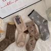 Damen Niedliche Kleine Bär Kaschmir Mid-Calf Socken – Warm, Dick, Kuschelig, Kaffeefarben für Herbst/Winter.