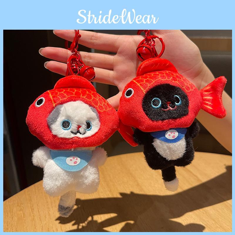 Entzückendes Design: Dieser Plüsch-Katzen-Schlüsselanhänger mit einem bezaubernden Koi-Fisch-Stirnband ist perfekt für Tierliebhaber und verleiht Ihren Accessoires eine verspielte Note.