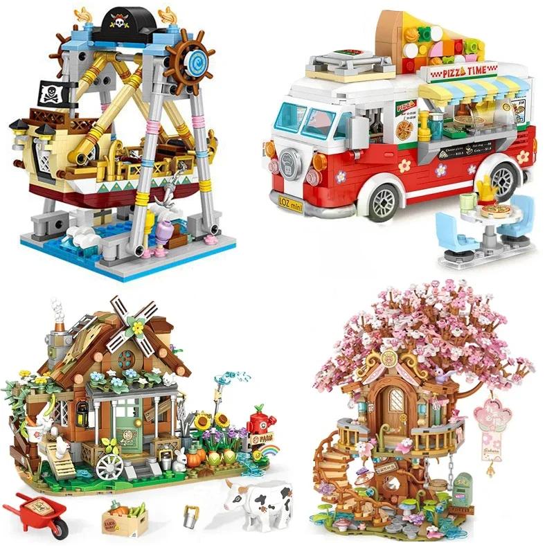 TOYLINX Street & City View Modellbausteine - Kinderbauspielzeug, Mini-Kreative Heimdekorationen