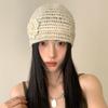 Flower Knitted Caps Hollow Sequin Crochet Hat Y2k Style Beanies Cap