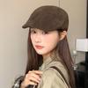 Suede Brown Forward Hat Women's Autumn and Winter British Retro Literary Beret Korean Style Face Showing Little Painter Hat