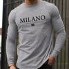 3D Milano Printed Casual Minimalist Sports Long Sleeved Men's T-shirts - Soft Medium Stretch Polyester Fabric Spring and Autumn Relaxed Fit Clothing