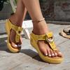 2025 Sommer neue Sandalen mit dicker Sohle, Fischgrätmuster, Zehenfrei, Keilabsatz, Strand, Freizeit, Zehenfrei, Ausländischer Handel, Coole Hausschuhe für Damen