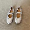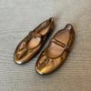 Schafslederversion~ Nische Retro Gold Wort Gürtel Mary Jane Einzelschuhe Damen Flachmund Flachsohlenschuhe Ballerinas Damen
