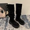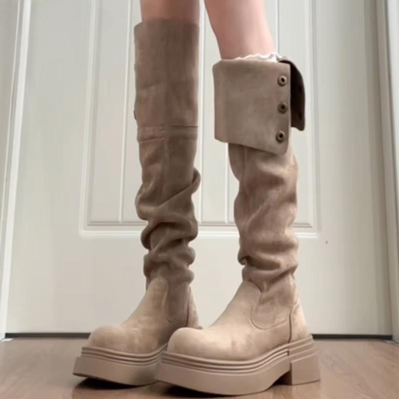 Winter Plateau Damen Oberschenkelhohe Stiefel Mode Slipper Lange Stiefeletten Vintage Prägnante Dicke Absatzschuhe