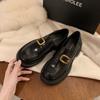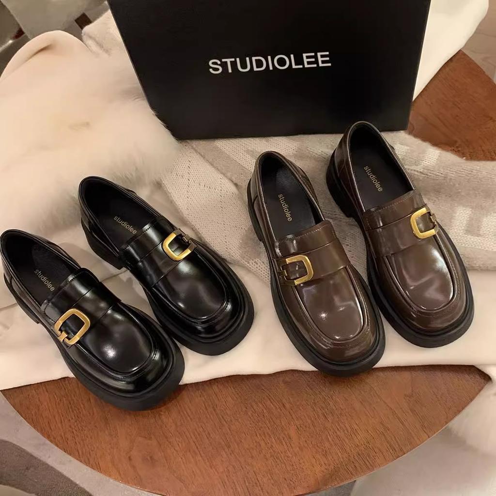 Rindslederversion~ Traubenmutter echtes Leder edle goldene Schnalle eckige runde Spitze britisches Stil faule dicke Absatz Slipper Damen kleine Lederschuhe