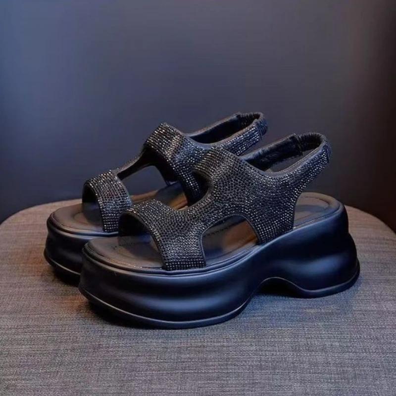Klobige Plateau Bling Sandalen Damen Neue Hohe Absätze Rutschfeste Elastische Hausschuhe Keilabsatz Sneakers 8CM Damen Strand Sommer Sandalen