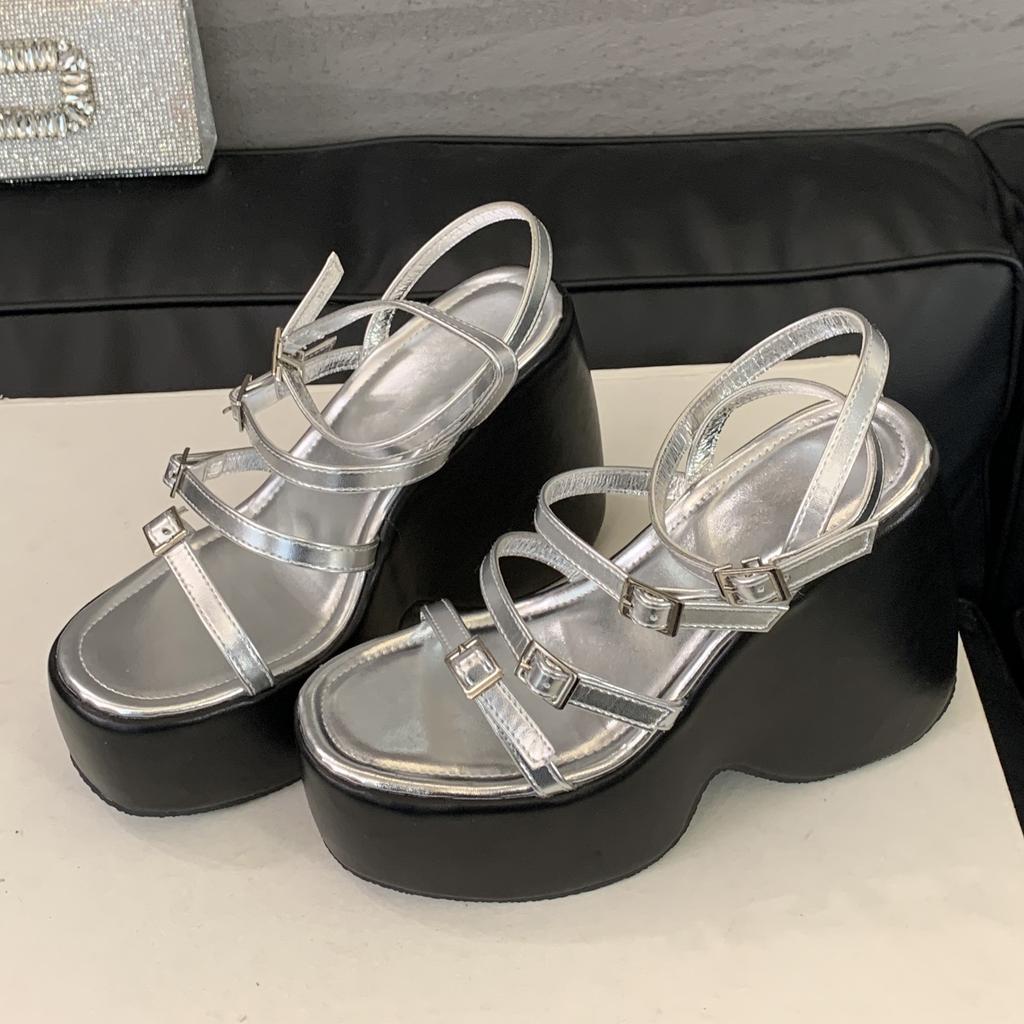 Eilyken Sexy Klobige Plateau Sandalen mit Schmalen Riemen Damen High Heels Schuhe Design Stil Schnallenschuh Sandalen für Damen