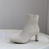 2025 Mode Damenstiefel Beige Spitzschuh Garn Elastische Stiefeletten Dicke Absätze Schuhe Herbst Winter Weibliche Sockenstiefel
