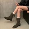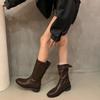 Schlankmachende Briti Sle Mid-Calf Knight ort Stiefel Damen Modische Stiefel Frühling Herbst Einzelstiefel PU-Leder Wate...