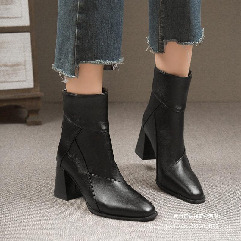 Retro braune Stiefel mit dickem Absatz Damen 2025 neue High Heel Martin Stiefel Britischer Stil kleiner eckiger Kopf dünne Stiefel schwarz
