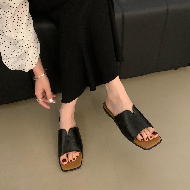 2025 Stilvolle Minimalistische Einriemen-Schiebesandalen Einfarbig Damen Hausschuhe Sommer Outdoor Lässig Zehenfrei Flache Schuhe Herbst