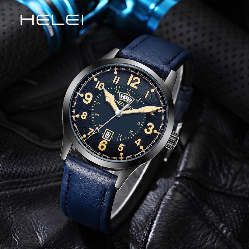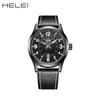 HELEI Wasserdichte Herren-Quarzuhr mit echtem Lederarmband - Modell H9019