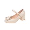 Mode Französisch Dicke Ferse Quadratischer Kopf Wasserdicht High Heel Einzelne Schuhe Damen 2025 Neue Linie Knopf Fee mit Rock Schuhe