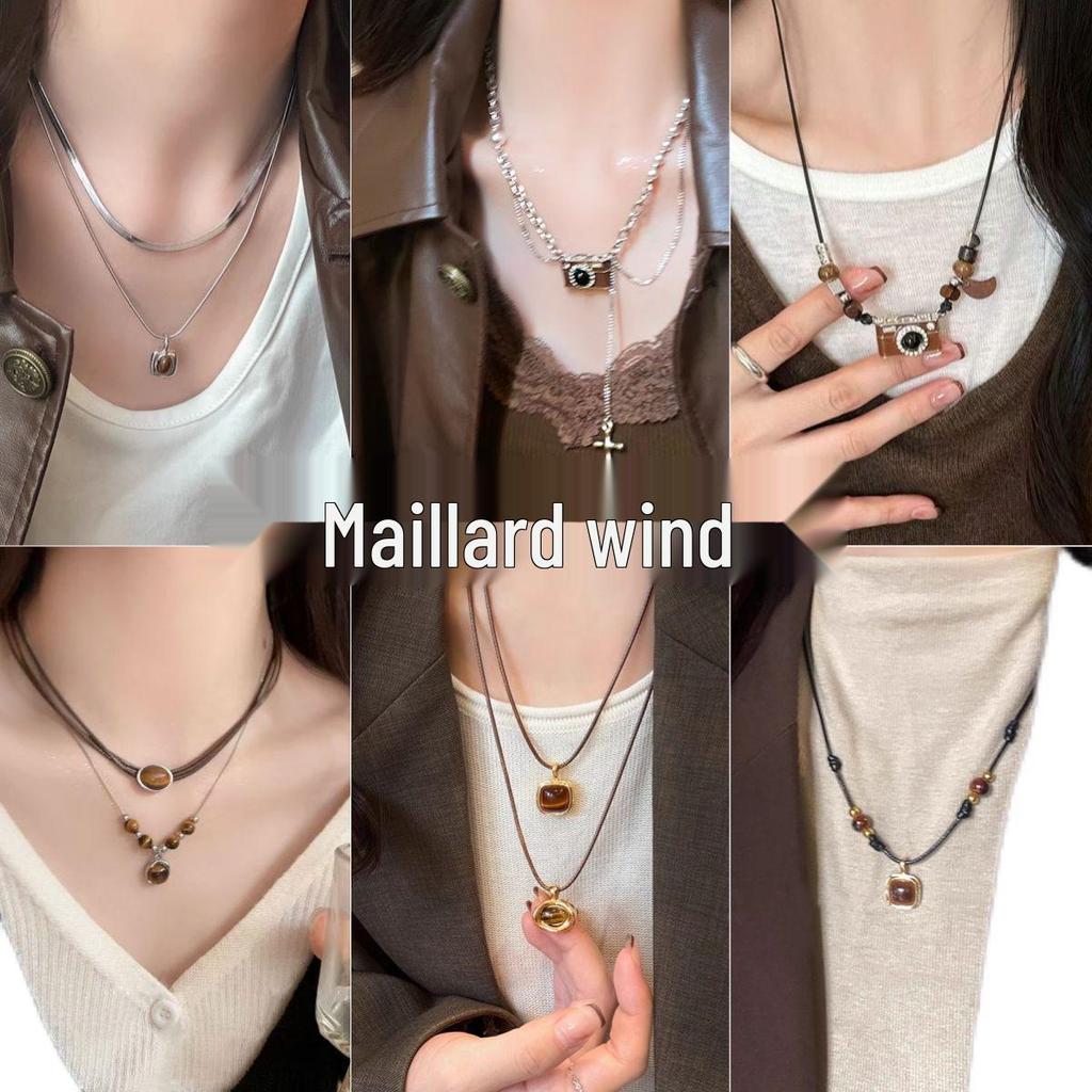 2025 Herbst/Winter Retro Mode Melaid Tigerauge Halskette für Damen - Hoodie-Kette im Hongkong-Stil.