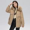 Women's New Velvet and Thickened Parka Short Korean Style Loose Waisted Large Fur Collar Jacket