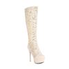 Fashion Summer Sexy Platform Thin High Heels Nightclub Hollow Out The Knee Boots Women Round Toe Lace Mesh Zip Shoes Sandals White Black