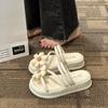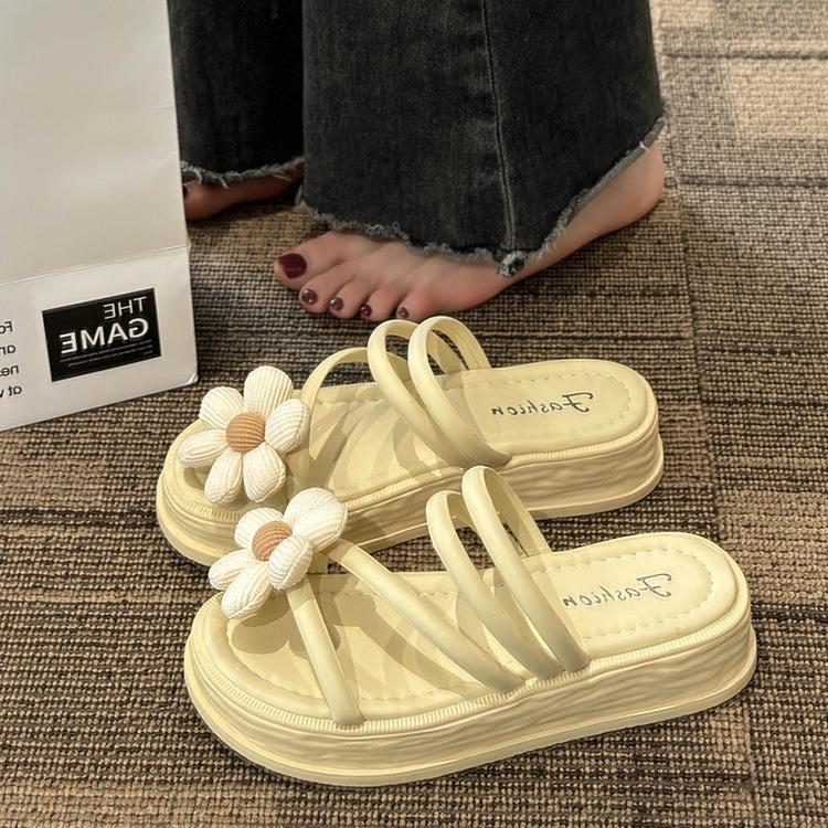 Super heiße Damenschuhe, Sandalen Damen Sommer neu süße Blume dünner Riemen dicke Sohle Cover, mittlerer Absatz und coole Pantoletten