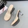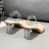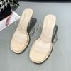 2025 neuer Kristall-Sense-Wort-Gürtel Damen Sommer kleine Kleidung High Heels transparente Pantoletten öffentliches Design dicke Absatzsandalen