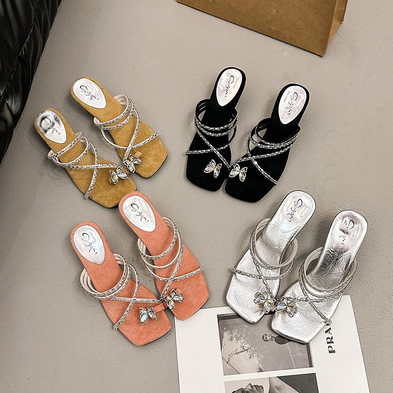 Nischen-High-Heel-Strass-Coole-Slipper, Damen-Schuhe mit dickem Absatz, 2025 neue Sommer-Temperamentslipper zum Rock
