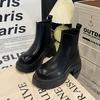 Stilvolle Retro-Casual-Chelsea-Kurzstiefel mit runder Spitze, Herbst und Winter neu, Imitatleder, dicker Absatz, dicksohlige Zigarettenstiefel