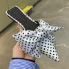 Modische Pantoletten mit Schleife in Übergröße für Damen, modische Sandalen mit spitzer Spitze, Streifen und Wellen, zum Hineinschlüpfen, luxuriöse flache Hausschuhe aus Satin und Seide für den Außenbereich